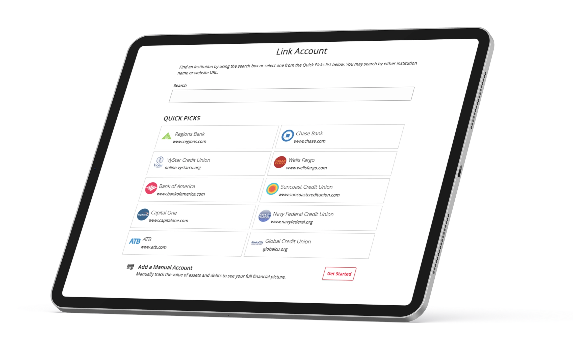 We know you may have accounts, cards, and investments at other financial institutions, so we built our tools with flexbility in mind.